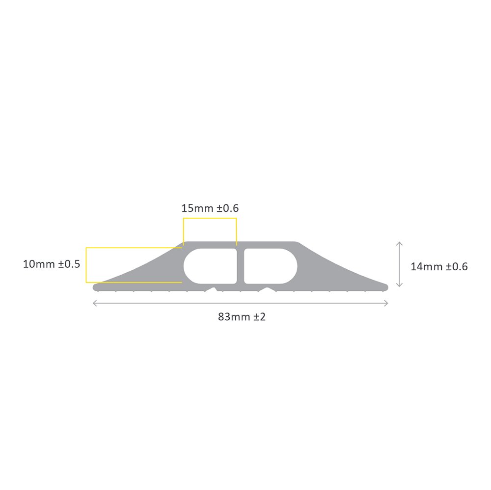 Unsere trittfeste Kabelbrücke aus PVC-Kunststoff bietet zwei getrennte Kabelkanäle zu besseren Organisation von Daten-, Telefon- und Stromkabeln. Ideale Kabelbrücke für Büro, Schulen, öffentliche Einrichtungen und Praxis Umgebungen.