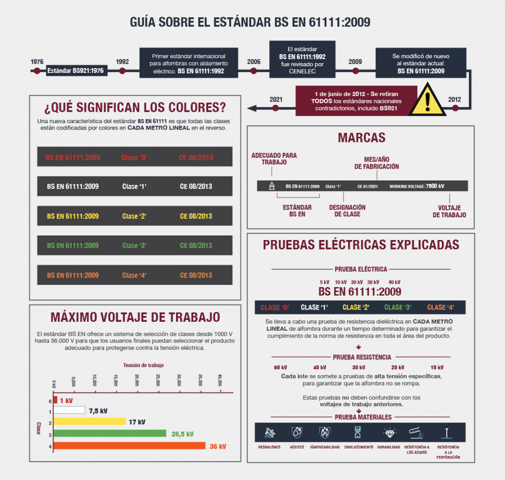 Las alfombras de aislamiento eléctrico evitan que las personas que trabajan en zonas de alta tensión se conecten a tierra y sufran una lesión. Las alfombras aislantes protegen contra las descargas eléctricas cuando se trabaja en generadores eléctricos. Se distinguen diferentes clases, divididas por el grosor de la alfombra aislante o la rigidez dieléctrica. Nuestra alfombra aislante eléctrica COBAswitch cumple la norma BS EN 61111:2009.