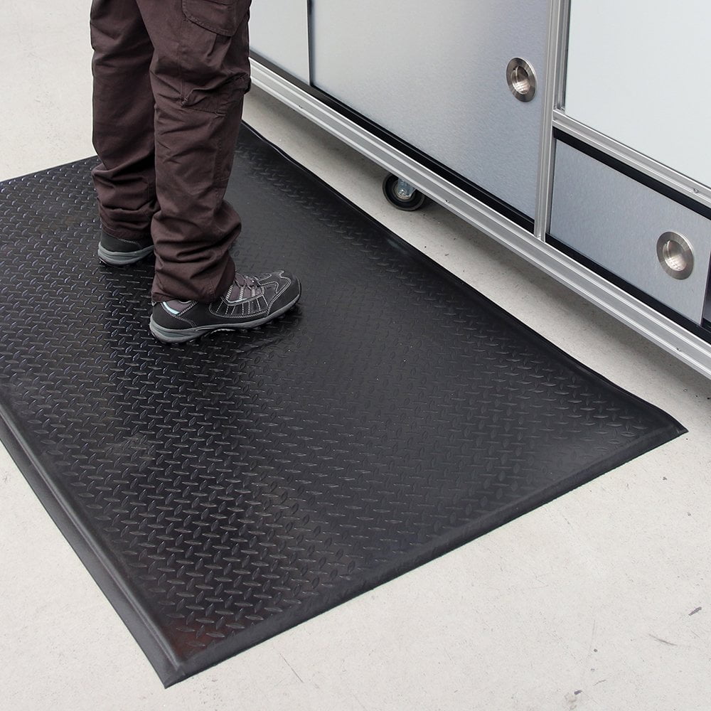 Silnejšia dvojvrstvová penová protiúnavová podložka pre maximálnu úroveň pohodlia - teraz aj s pridanými žltými okrajmi pre väčšiu viditeľnosť a bezpečnosť.